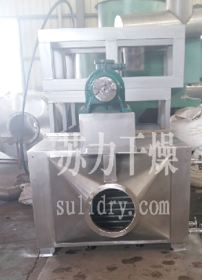 空气经加热净化后,由引风机从下部导入,穿过料斗的孔网板。在工作室内,经搅拌和负压作用形成流态化,水份快速蒸发后随着排气带走,物料快速干燥。
