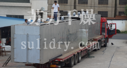 日前广东某公司在《www.9l.cn免费网站》订购了隧道热风烘箱,设备箱体长度20米,为便与运输及拆卸,将设备分为两段,各10米;配套烘车38辆,手工不锈钢网盘1140只,此设备主要用于良姜的烘干,干燥,深加工处理。我公司已经严格按照客户要求制造设备完毕,现已成功发货。