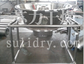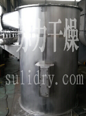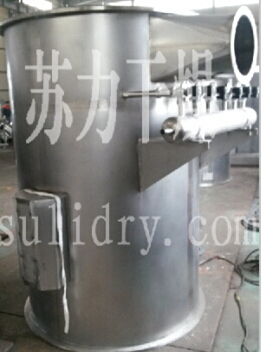 空气经加热净化后,由引风机从下部导入,穿过料斗的孔网板。在工作室内,经搅拌和负压作用形成流态化,水份快速蒸发后随着排气带走,物料快速干燥。