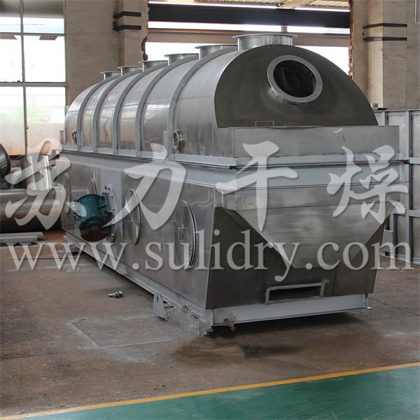 流化床干燥机流化床干燥机仅次于喷雾干燥机。分为加料部位设置搅拌器的流化床干燥机和具有内换热的流化床干燥机。当用流化床干燥易于团结或结块的粉粒体物料时,在水分比较大的加料段会产生流化困难现象,这时在加料段设置搅拌器,消除结团问题,能达到正常流化。后者是传导传热和对流传热的组合,当用于正常流化态的热空气量远远不能满足干燥所需的加热设备热量时,采用设置内换热器,供给部分或大部分热量,这种操作方式可以显著的节能。内换热器有多种形式。流化床还经常用于组合干燥的第二级和第三级干燥机。