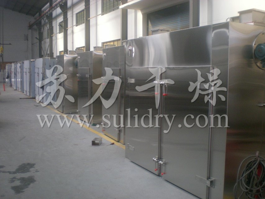大部分热风在箱内循环,热效率高,节约能源。利用强制通风作用,箱内设有可调式分风板,物料干燥均匀,热源可采用蒸汽、热水、电、远红外,选择广泛。整机噪音小,运转平衡。温度自控,安装维修方便。适用范围广,可干燥各种物料,是通用干燥设备。