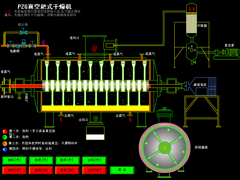 具有加热面积大,加热效率高等特点的真空耙式干燥机,适用于干燥热敏性、干燥后易氧化和硬化,以及一些需要从排气口回收溶剂的物料。