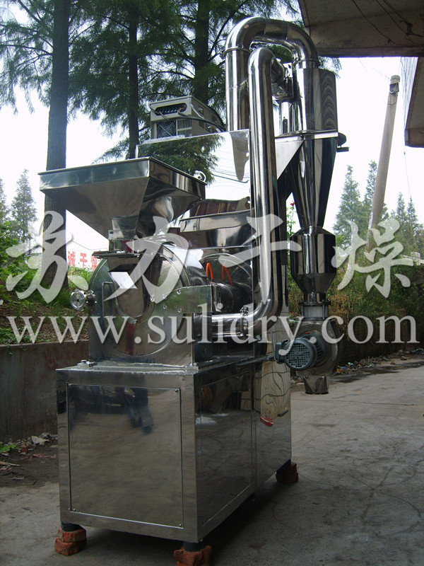 该机具有技术性能稳定、产量高、外形美观。适用范围广等特点。本机对于粉碎干燥纤维物料具有理想的效果。与国内其他机型相比,制品温度低,粒度均匀,特别适用于食糖、塑料粉末、中药等热敏性物料的粉碎。