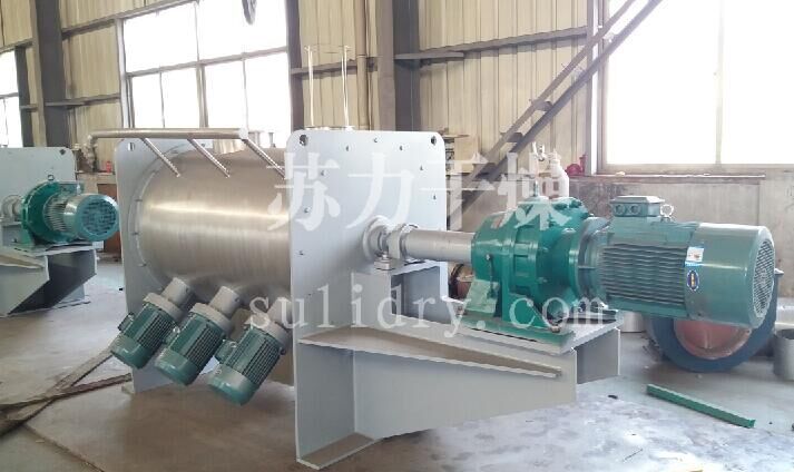 该机型由传动机构、卧式筒体、犁刀、飞刀四部分组成,物料在犁刀作用下沿筒壁作轴向流支,当物料流经飞刀时被高速度旋转的飞刀抛洒,从而在较短时间内达到均匀混合。